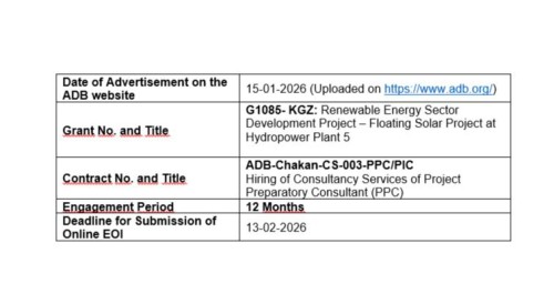ОАО «Чакан ГЭС» получило грант от Азиатского банка развития (АБР) на реализацию проекта «Развитие сектора возобновляемой энергетики – плавучая солнечная станция на ГЭС-5».